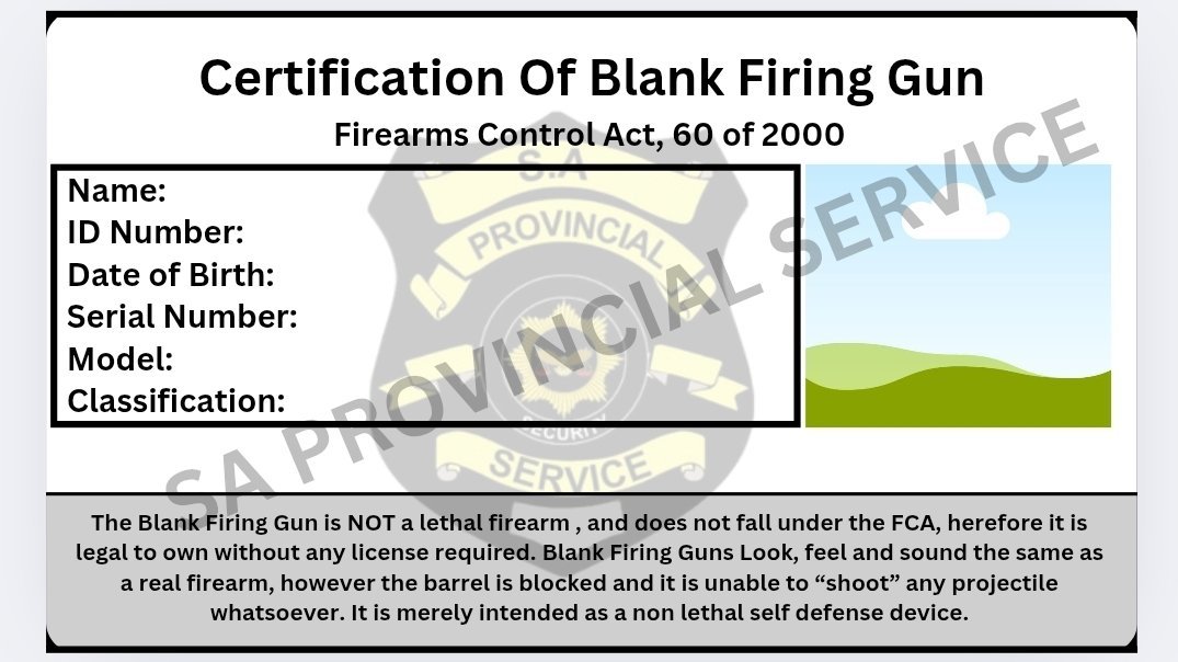 Certificate Of Blank Firing Gun (Physical Card)