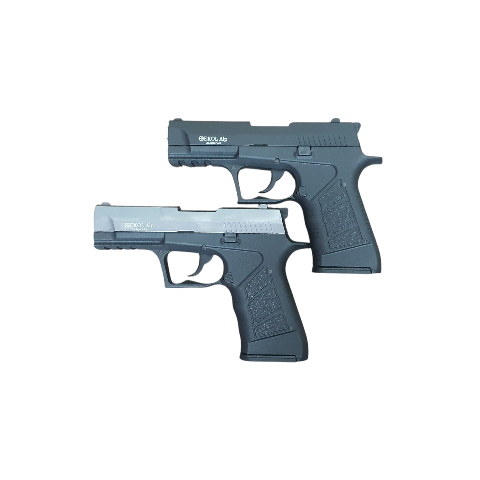The Alp is a lightweight, polymer-framed blank pistol designed for training, theatrical use, or as a signal/starter pistol.
